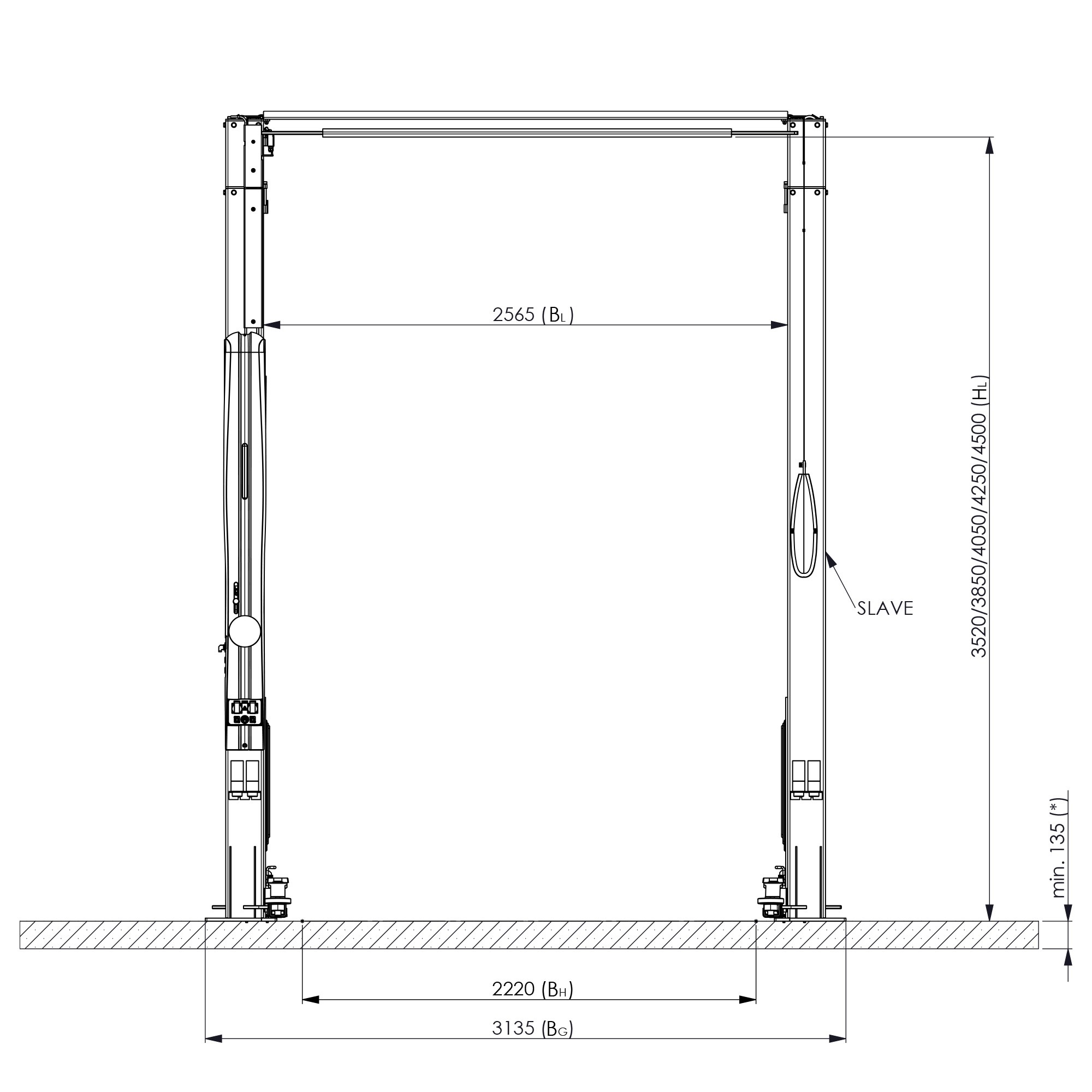 | Prześwit kolumny BL | 2565 mm | 2565 mm | 2565 mm | 2850 mm | ||