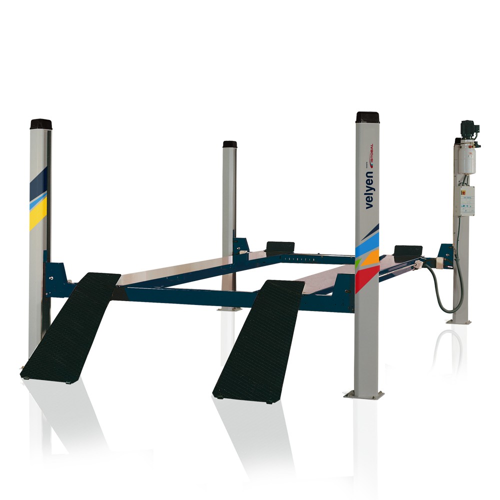 Podnośnik 4-kolumnowy Velyen o udźwigu 4000 kg to niezawodne rozwiązanie dla warsztatów samochodowych specjalizujących się w obsłudze pojazdów osobowych i dostawczych. Solidna konstrukcja zapewnia bezpieczeństwo i stabilność podczas pracy, a precyzyjnie zaprojektowany mechanizm podnoszenia gwarantuje wygodę użytkowania. Model 4ED0400N wyposażony jest w nowoczesne systemy zabezpieczeń oraz opcje dodatkowe, takie jak platformy najazdowe i miejsce na montaż opcjonalnego podnośnika osiowego. Idealny wybór dla profesjonalistów, którym zależy na trwałości, funkcjonalności i wydajności.