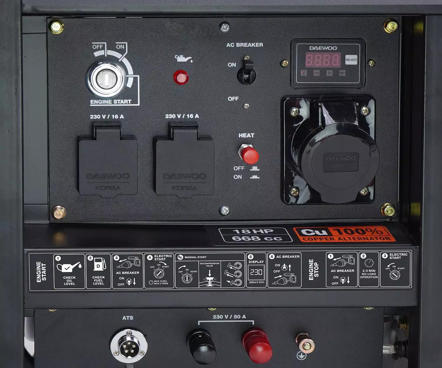 Agregat prądotwórczy DDAE 11000XE posiada silnik wysokoprężny o wydłużonej żywotności. W 100% miedziane uzwojenie prądnicy gwarantuje generowanie stabilnego prądu wysokiej jakości. Dzięki funkcji podgrzewania silnika urządzenie bez trudu uruchamia się w minusowych temperaturach. Ten model jest kompatybilny z modułem samoczynnego załączania agregatu w sytuacji braku zasilania z sieci (ATS).