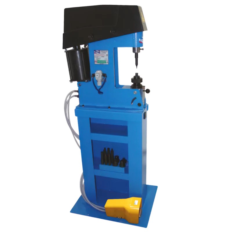 Urządzenie PUN-1+P przeznaczone jest do nitowania okładzin hamulcowych, stosowanych w pojazdach samochodowych nitami rurkowymi /stalowymi , mosiężnymi, miedzianymi lub pełnymi - aluminiowymi. Źródłem napędu w urządzeniu jest siłownik pneumatyczny sterowany pedałem.
