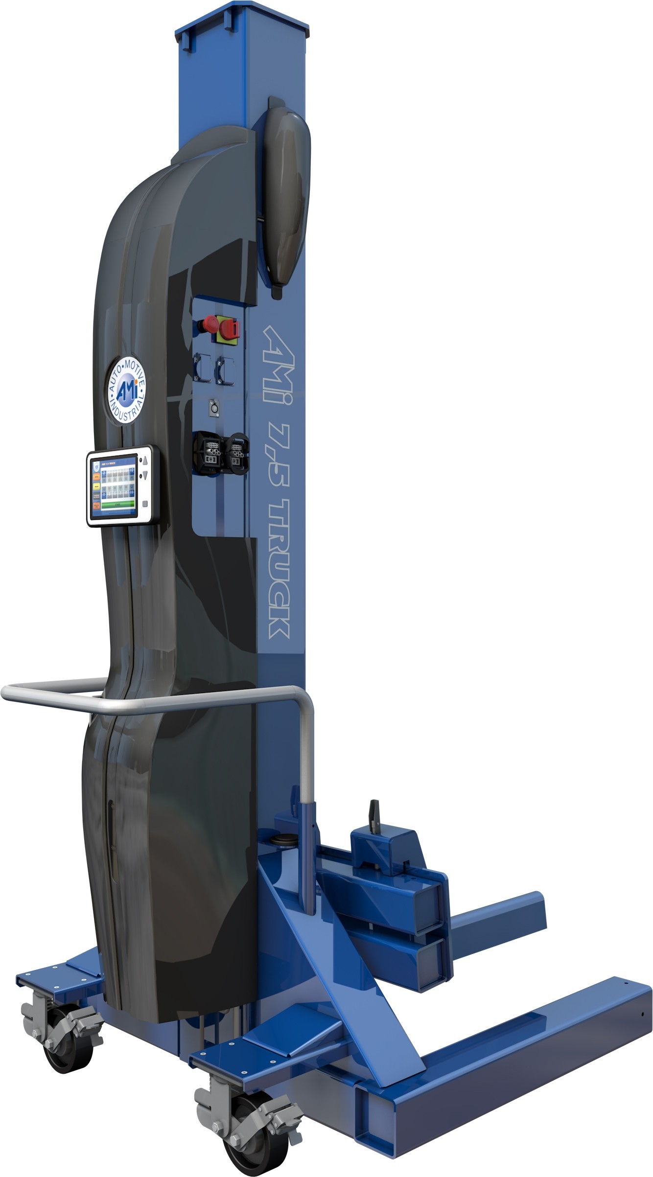 AMI TRUCK to mobilny podnośnik kolumnowy zaprojektowany do obsługi pojazdów ciężarowych, autobusów oraz maszyn rolniczych. Dzięki elektrohydraulicznemu napędowi oferuje udźwig 5,5 tony na kolumnę, z możliwością konfiguracji zestawów składających się z 4, 6, 8, 10 lub 12 kolumn, co pozwala na elastyczne dostosowanie do różnych typów pojazdów.