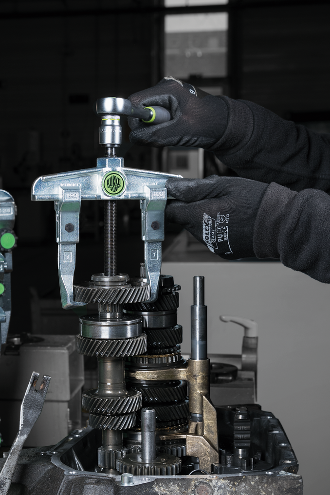 2-ramienny uniwersalny ściągacz jest używany do zdejmowania łożysk, kół zębatych i tarcz we wszystkich popularnych rozmiarach, zarówno w rzemiośle, warsztacie, jak i przemyśle. Dzięki niemu można odkręcić każdą część zamocowaną na wale i swobodnie dostępną z zewnątrz. Wyposażony w solidne i regulowane standardowe haki, ten wszechstronny ściągacz zapewnia szczególnie bezpieczny, bezuszkodzeniowy demontaż zarówno w przypadku zewnętrznego, jak i wewnętrznego demontowania.