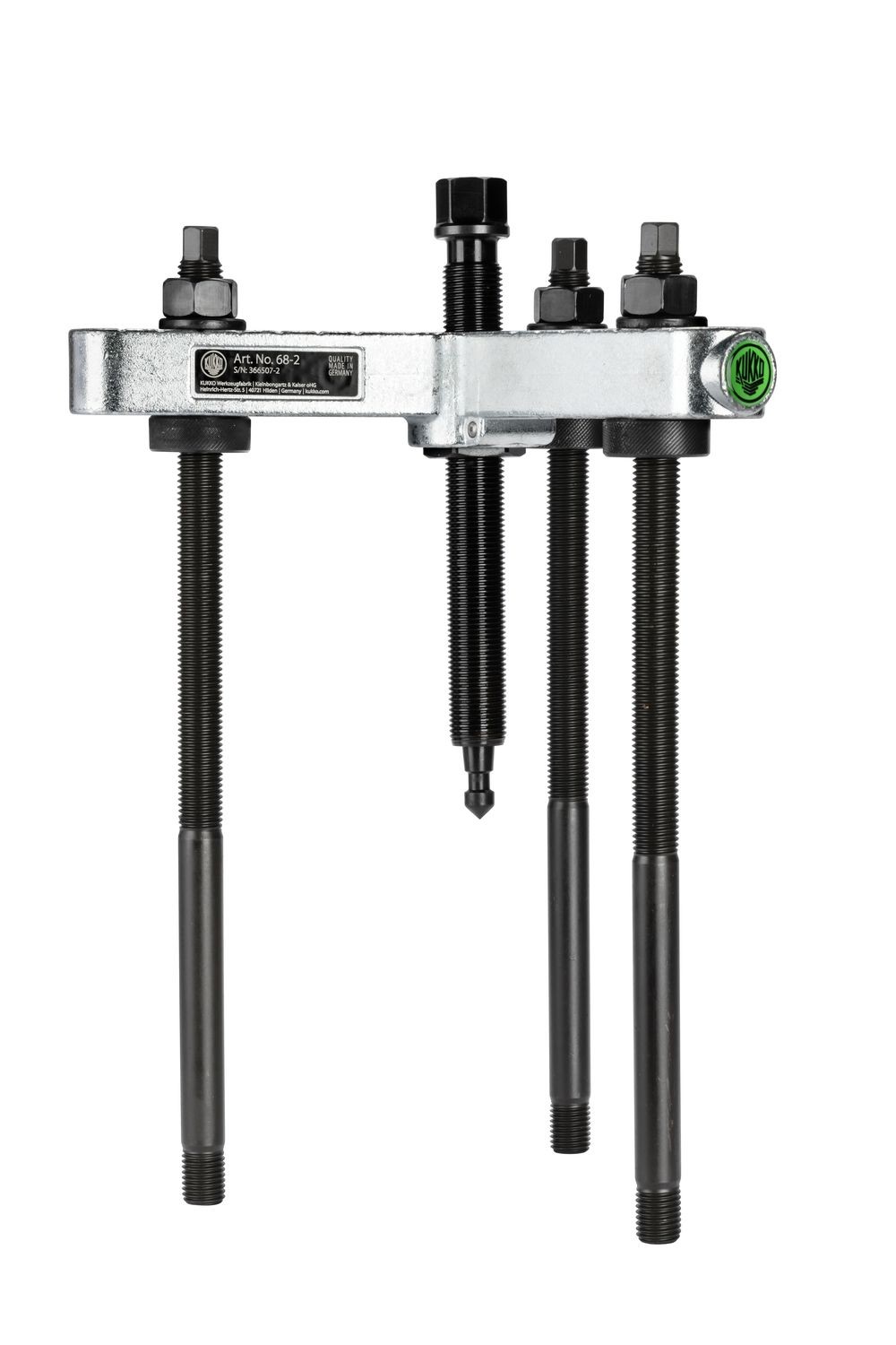 Kombi-Ściągacz 68-2 z Power Nut można połączyć z urządzeniami rozdzielającymi serii 13, ściągaczami wewnętrznymi serii 21, zestawami ściągaczy łożysk kulkowych serii 69 i innymi częściami (np. haki czy haki olejowe). Dzięki różnym możliwościom pozycjonowania Power Nut urządzenia nadają się zarówno do wyciskania, jak i ściągania (Push & Pull) elementów w rzemiośle, przemyśle i warsztacie. Multi-traverse serii 68 oferuje, w zależności od zastosowania, miejsce na dwa, trzy lub cztery śruby pociągowe. Gwarantuje to większą powierzchnię podparcia, a tym samym równomierne rozłożenie siły. Pod spodem belki poprzecznej zamocowane są trzy małe magnesy, które służą do ustawiania i mocowania Power Nut.