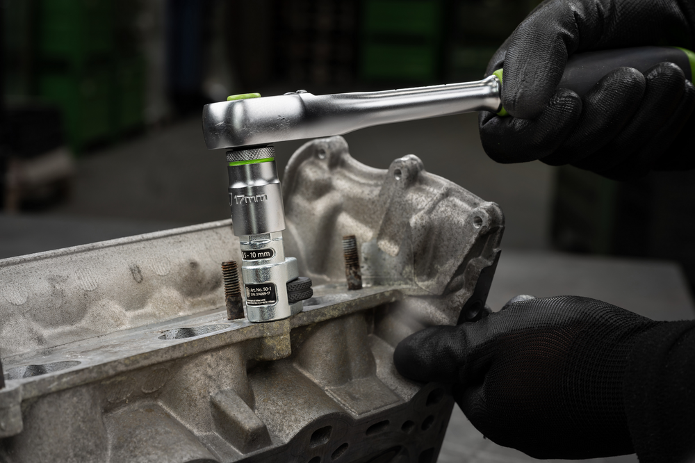 Wykrętak do śrub ze szpilką i wewnętrznym uzębieniem serii 50 jest używany do wykręcania śrub lub uszkodzonych części w motoryzacji i przemyśle. Wykrętaki do śrub ze szpilką marki Kukko są dostępne w różnych średnicach i wersjach. Seria 50 wyróżnia się szczególnie sprawdzoną i solidną konstrukcją, szczególnie przy dużym obciążeniu.