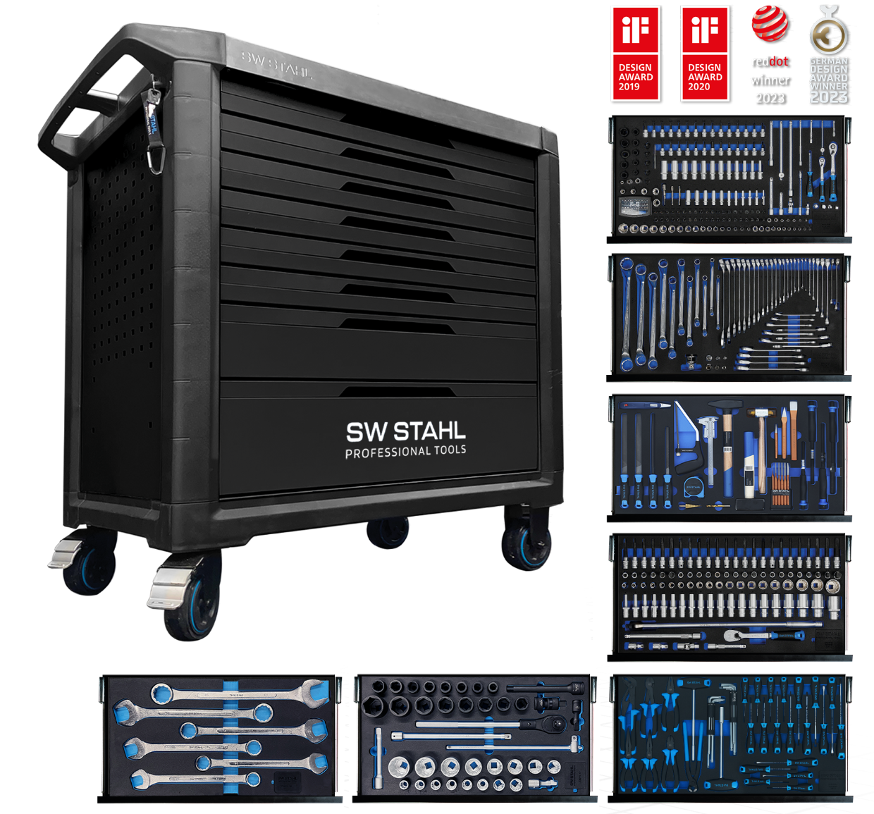 Profesjonalny wózek narzędziowy TT802 (07140L) marki SW-Stahl to najwyższy standard organizacji pracy w warsztacie. Dzięki zastosowaniu 8 precyzyjnie dobranych modułów narzędziowych, użytkownik otrzymuje pełen wachlarz narzędzi niezbędnych do obsługi pojazdów osobowych i dostawczych.